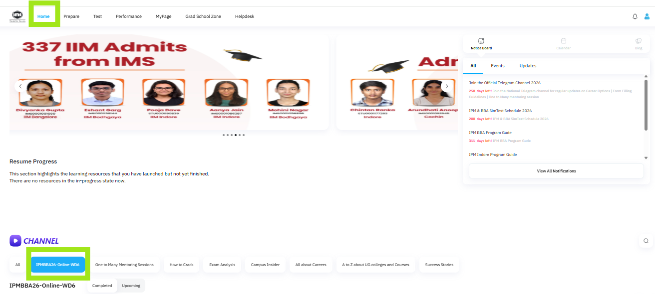 Use your credentials to access the https://myimsv3.imsindia.com/Locate Your Batch Channel