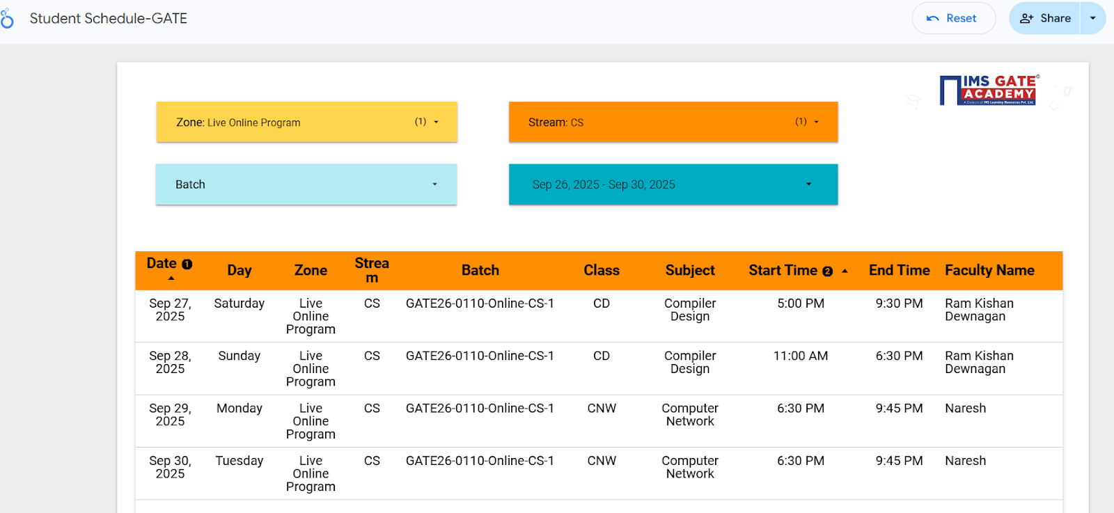You can view your batch's schedule by accessing the Class Timetable through the portal. Here’s how: