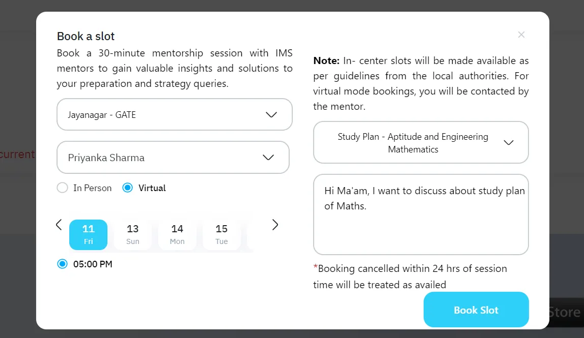 Book a Slot: Select an available session from the calendar and confirm your booking.